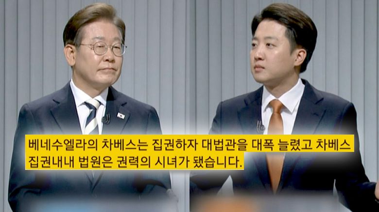 [이준석/개혁신당 대선 후보 (지난 23일) : 이재명 후보는 이런 삭감이나 이런 것에 대해선 말하는 걸 주저하시고 뭐 '더 주겠다' 이런 말씀하시는 게 바로 차베스 같은 겁니다.]
