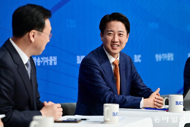 방송기자클럽 초청 토론회 개혁신당 이준석 대선 후보(오른쪽)가 26일 오전 서울 양천구 한국방송회관에서 열린 한국방송기자클럽 초청 토론회에 참여하고 있다. 이 후보는 이날 “저는 대선 레이스의 시작부터 완주 의사를 분명히 밝혔다”며 단일화 가능성을 일축했다. 박형기 기자 oneshot@donga.com
