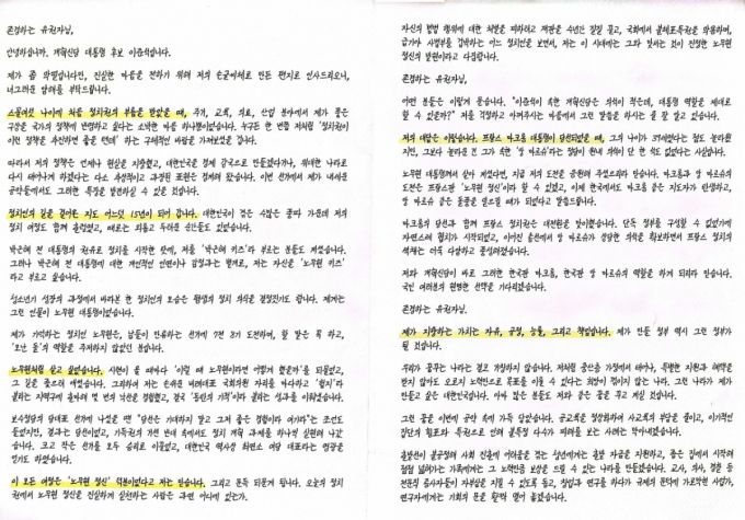 이준석 개혁신당 대선 후보는 선거 공보물에 직접 쓴 손편지를 담았다. /사진=이준석 후보 선거 공보물