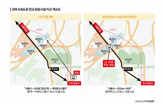지금은 서울~판교를 잇는 광역버스 노선은 경부고속도로 판교 나들목(IC)으로 빠져나가 판교역 등에서 정차한다. 이곳에서 다시 시내버스로 갈아타 판교 2테크노밸리로 간다. 서울과 판교 2테크노밸리를 오가는 인원은 하루 평균 5000여명 정도라고 국토부는 설명했다.
