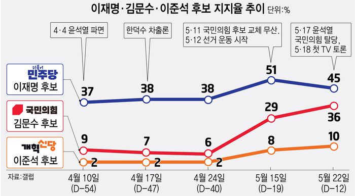 이재명·김문수·이준석 후보 지지율 추이