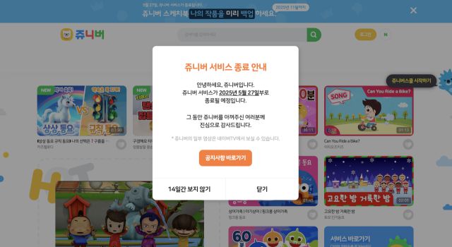 쥬니어 네이버, 27일 서비스 종료···"함께 성장해 온 뜻깊은 여정"
