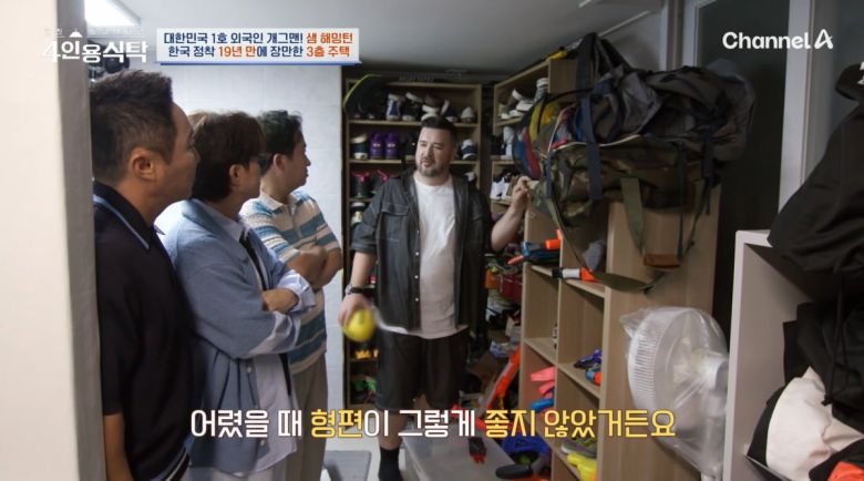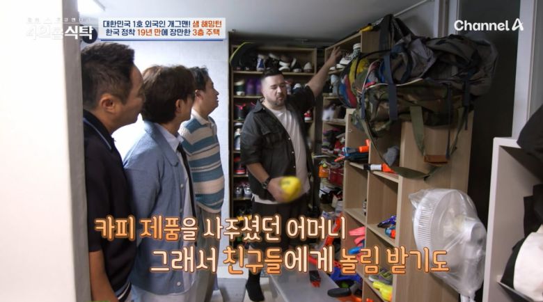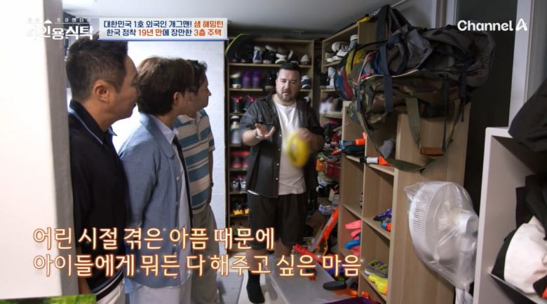 샘 해밍턴은 "4년 전에 여기로 이사 왔다. 한국 온 지 19년 만에 자가가 생겼다"고 밝혔다. 샘 해밍턴은 세 사람에게 집 이곳저곳을 구경시켜줬다.