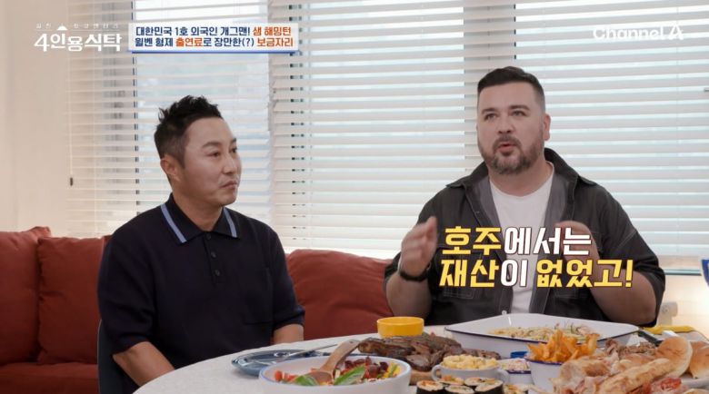 26일 방송된 채널A '절친 토큐멘터리 – 4인용식탁'에서는 샘 해밍턴이 코미디언 서경석, 김병만, 박성광을 초대했다.