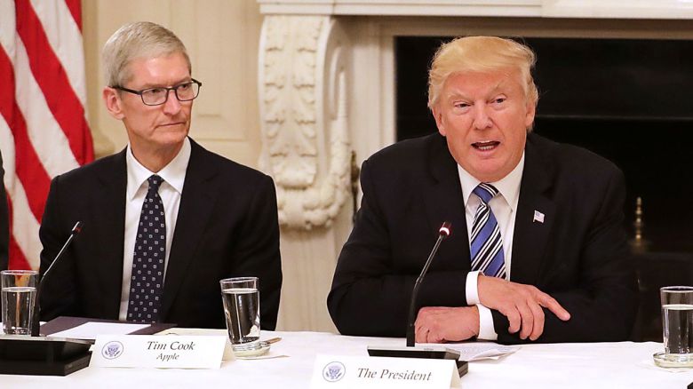 애플 측과 백악관은 쿡 CEO의 트럼프 대통령 순방 동행 거부 보도에 관한 논평 요청에 응답하지 않았습니다.