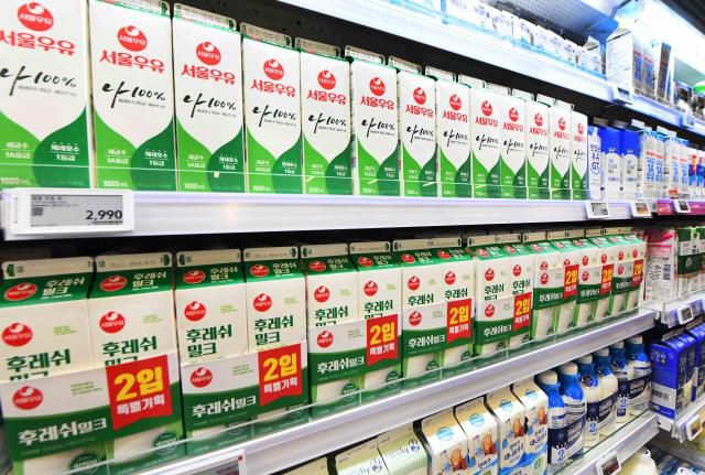 2일 홈플러스 메가 푸드 마켓 강서점에 서울우유가 진열된 모습. [사진=홈플러스]