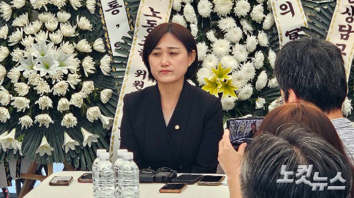 27일 제주도교육청 앞마당에 마련된 A 교사 분향소를 찾은 더불어민주당 백승아 국회의원은 "서이초 교사 사망사건과 비슷한 일이 재차 벌어져서 너무 참담하다"며 울먹이며 말했다.