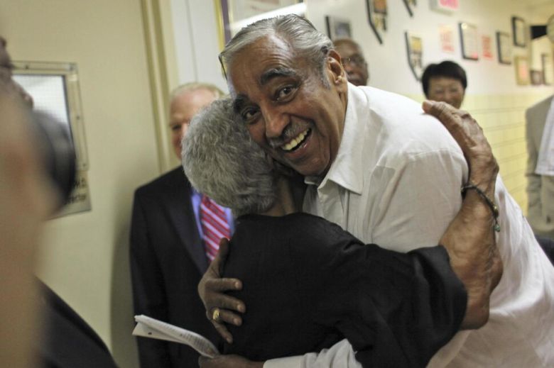 2010년 7월 24일 찰스 랭글 하원의원(민주당, 뉴욕)이 뉴욕 할렘병원에서 열린 건강보험 포럼에 도착해 한 지지자의 환영을 받았다. 랭글 의원은 미국의 현충일인 메모리얼데이에 타계했다. 뉴욕/AP 연합뉴스