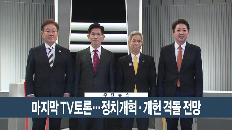 후보들은 정치 양극화 해소 방안에 이어, 정치 개혁과 개헌, 외교·안보 정책을 놓고 공약 검증 토론을 벌일 예정입니다.