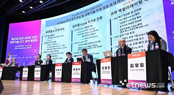 제21대 대선 선대위 초청 과학기술·ICT 공약 토론회가 27일 서울 중구 대한상공회의소에서 열렸다. 조용민 개혁신당 공동선대위원장 겸 과학기술 정책위원장이 이준석 후보의 공약을 소개하고 있다. 이동근기자 foto@etnews.com [Copyright © 전자신문. 무단전재-재배포금지] 이 기사의 카테고리는 언론사의 분류를 따릅니다.0공유하기