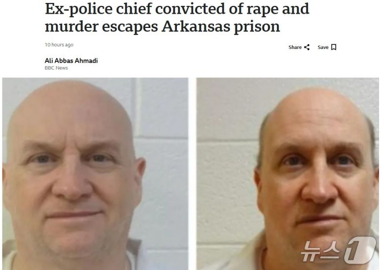 (서울=뉴스1) 박형기 기자 = 강간과 살인 혐의 등으로 유죄 판결을 받고 교도소에 복역하던 전직 아칸소주 경찰서장이 감옥에서 탈출했다고 영국 BBC가 26일(현지시간) 보도했다