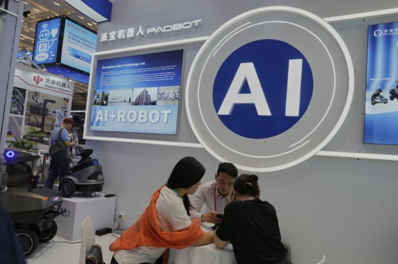 지난달 16일 중국 광둥성 광저우에서 열린 제137회 광저우 수출입상품교역회(칸톤 페어)에서 바이어들이 인공지능(AI) 부스를 둘러보고 있다.AP뉴시스