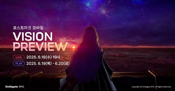 이어 19일과 20일에는 모험가들을 직접 초청해 로스트아크 모바일의 다양한 콘텐츠 체험과 현장 이벤트 참여 기회를 제공하는 '비전 프리뷰 플레이'를 진행한다. 체험 행사는 서울 삼성동에 위치한 그랜드 인터컨티넨탈 서울 파르나스에서 열린다.