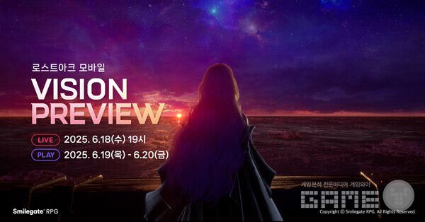 스마일게이트 RPG가 개발 중인 신작 MMORPG '로스트아크 모바일'의 대규모 공개 행사 '비전 프리뷰(VISION PREVIEW)'가 오는 6월 18일부터 20일까지 사흘간 개최된다. 이번 행사에 앞서, 스마일게이트는 공식 홈페이지를 처음으로 오픈하고 비전 프리뷰의 상세 내용을 함께 공개했다.