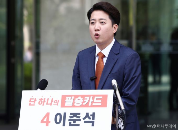 이준석 개혁신당 대통령 후보가 27일 오후 서울 여의도 국회 소통관 앞에서 긴급 기자회견을 하고 있다. 2025.5.27/사진=뉴스1 /사진=(서울=뉴스1) 김민지 기자 |