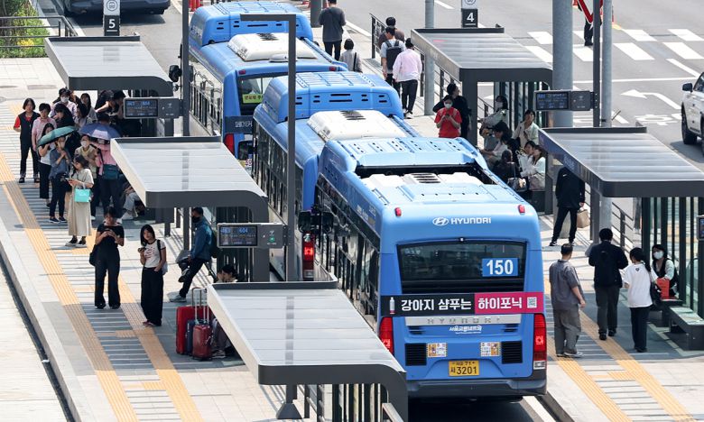 서울시버스노동조합의 총파업 예고일을 하루 앞둔 27일 서울 중구 서울역 버스환승센터에서 시민들이 버스를 이용하고 있다. 노조는 이날 교섭이 최종 결렬될 경우 28일 첫차부터 전국 동시 파업에 나선다고 밝혔다. 뉴스1
