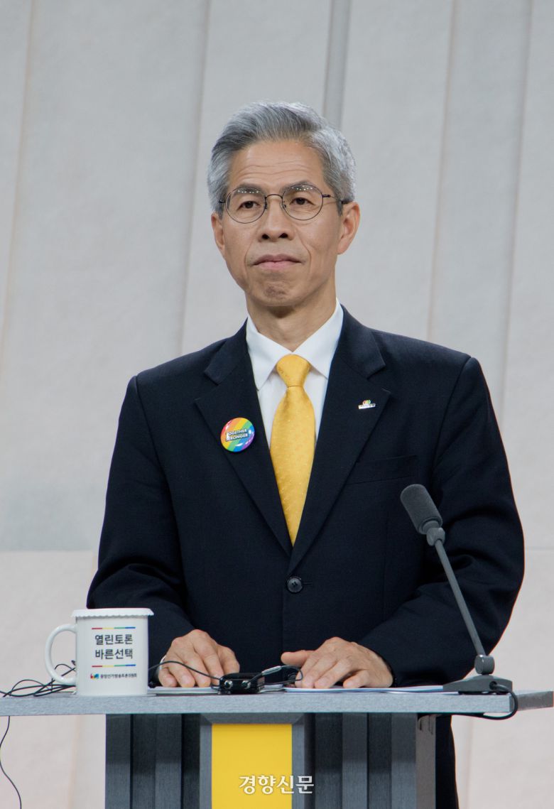 권영국 민주노동당 대선 후보가 27일 서울 상암 MBC스튜디오에서 열린 대선 후보 3차 TV토론회에 참석하고 있다. 국회사진기자단 |