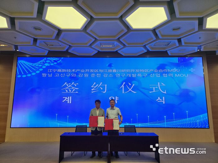 강원대학교 강원춘천 강소연구개발특구는 27일 중국 난징에서 짱닝하이테크 신기술 산업원과 '지역 바이오기업의 국가간 진출을 위한 업무협약'을 체결했다.