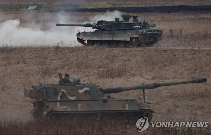 폴란드서 실사격 훈련하는 한국산 K2 전차와 K-9 자주포. |