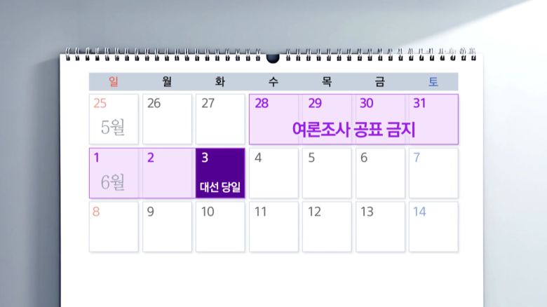 부정확한 조사로 선거에 영향을 주는 것을 막기 위해, 대선 당일인 다음 달 3일 저녁 8시까지 정당 지지도나 후보 지지율 같은 조사 결과를 공개할 수 없습니다.