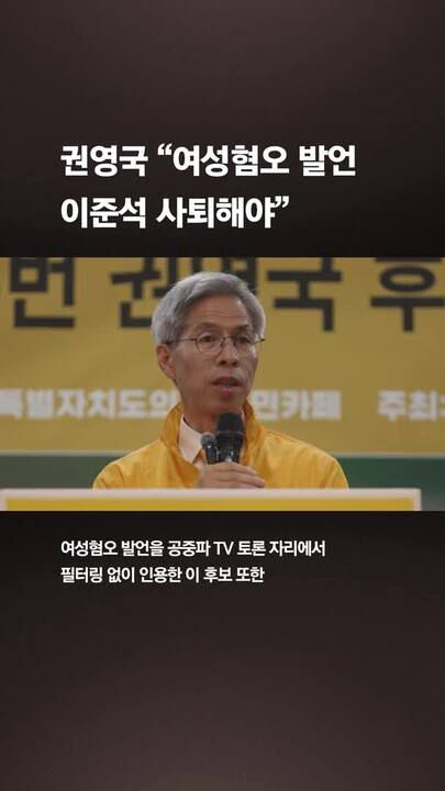 이준석 후보는 이날 TV 토론에서 이재명 후보를 에둘러 겨냥하며 권영국 민주노동당 대선 후보에게 "민노당 기준으로 어떤 사람이 여성에 대해 얘기할 때 '여성의 성기나 이런 곳에 젓가락을 꽂고 싶다' 이랬다면 이건 여성 혐오에 해당하나"라고 질문했다.