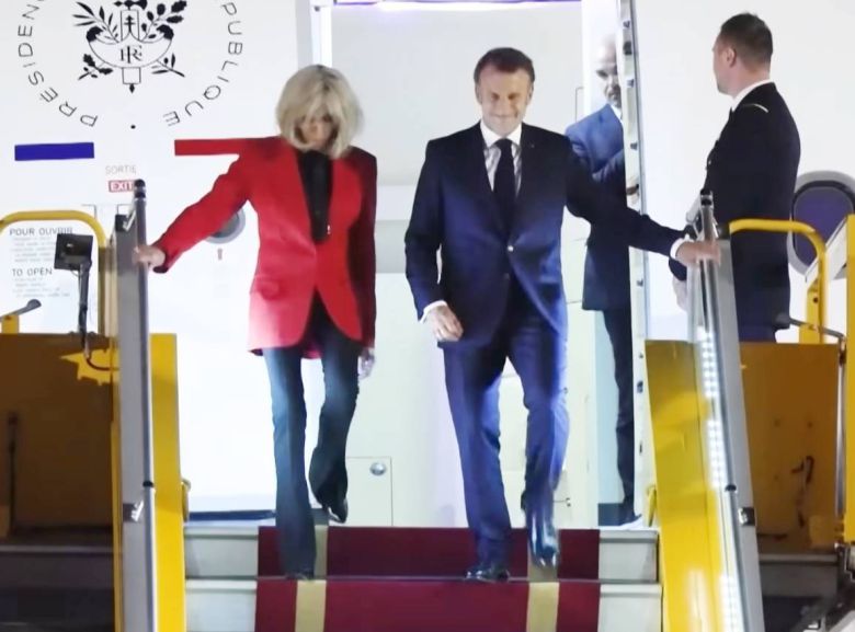 마크롱 대통령은 당황한 듯 보였지만 문 밖에 카메라가 있다는 사실을 인지하고 환하게 웃으며 손을 흔들었다. 마크롱 대통령은 전용기 계단을 내려오면서 팔을 뻗어 부인을 에스코트하려 했지만 브리지트 여사가 거부했다. 그는 홀로 난간을 잡고 굳은 표정으로 내려왔다.
