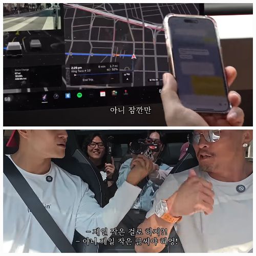 결국 김종국과 추성훈은 “이거 일부러다. 친구들이 지금 놀리려고 핸드폰 글씨 제일 작게 한 거다”고 짐작하며 뒷자리에 앉은 제작진을 째려보는 장면이 포착돼 웃음을 유발했다.