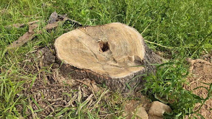 하지만 홍성군이 '매죽헌 쉼터 조성사업'을 추진하면서, 이 오동나무를 포함한 나무 다섯 그루를 베어냈습니다.
