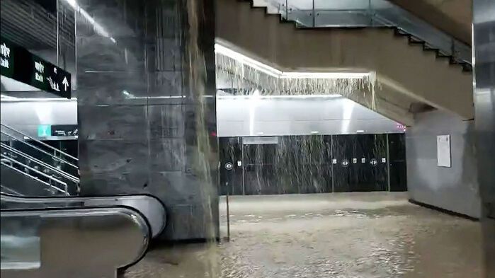 기록적인 폭우로 승강장과 계단 등 지하철역 곳곳이 침수되면서, 승객들이 큰 불편을 겪었다고 하네요.