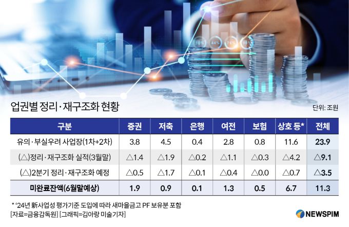금감원은 6월 말까지 추가로 1조7000억원 규모의 사업장을 정리하겠다는 계획이다. 목표가 이행될 경우 남은 부실 사업장은 약 9000억원 수준으로, 지난해 말 대비 약 80% 줄어든다.