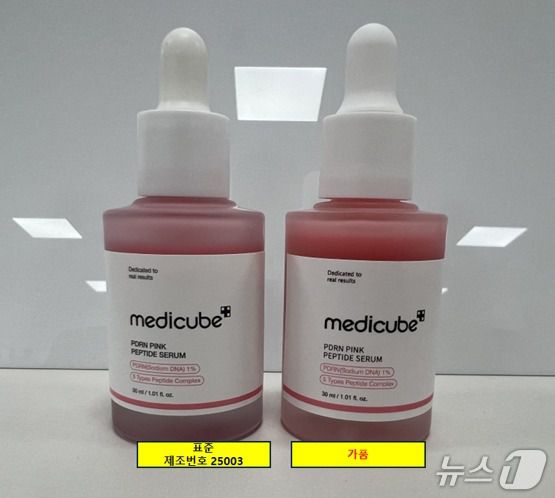 에이피알 메디큐브의 PDRN 핑크 펩타이드 앰플 가품·정품 비교.(에이피알 제공)