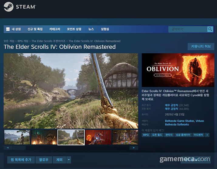 ▲ 국내에서도 접속과 구매가 가능해진 엘더스크롤 4: 오블리비언 리마스터 스팀 페이지 (자료출처: 스팀) |