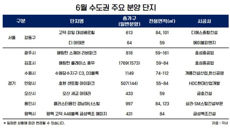 6월 수도권 1만3000여 가구 분양 예정