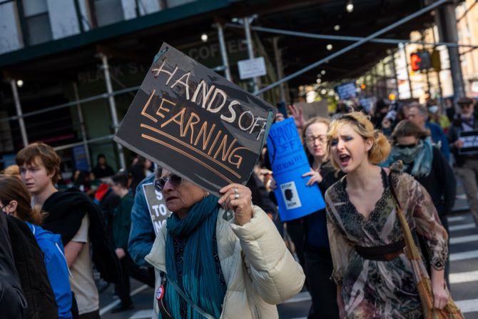 학생, 교사, 시민단체 활동가들이 지난달 17일(현지시간) 뉴욕시에서 대학과 교육을 지지하는 집회 및 행진을 벌였다.