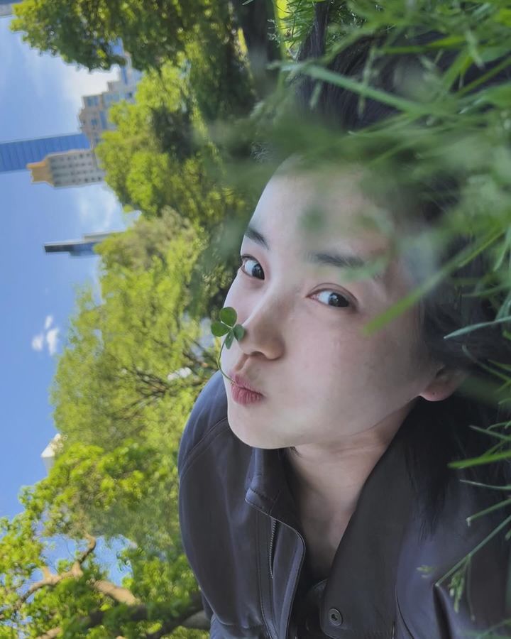 또 다른 사진 속에서 김태리는 직접 찾은 듯한 네잎클로버를 입에 물고, 카메라를 쳐다보고 있는 모습이다.