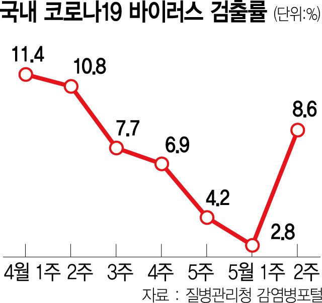 실제 불안한 조짐이 감지되고 있다. 코로나19 바이러스 검출률이 이달 2주차 기준 8.6%로 전주대비 5.8%포인트 늘었다. 8주만에 처음 증가세로 돌아선 수치다. 다만 코로나19 입원환자는 최근 4주간 100명 안팎에서 소폭 증감만 거듭하며 큰 변화가 나타나지 않고 있다.