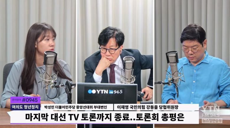 ◇ 이재영 : 수치로 말씀드려야 되나요? 세 번의 TV 토론회가 있었죠. 총평을 하자면 수치를 보자면 김문수 44%, 이재명 43% 이준석 8% 그리고 권 후보 5% 합 100% 이게 6월 3일까지 쭉 갈 것 같습니다.