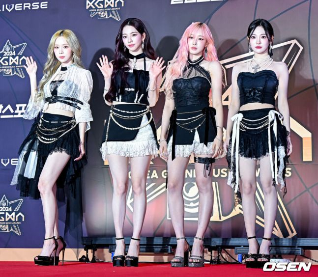 앞서 정치색 논란에 휩싸인 카리나는 시상식 내내 밝은 모습을 드러냈다.