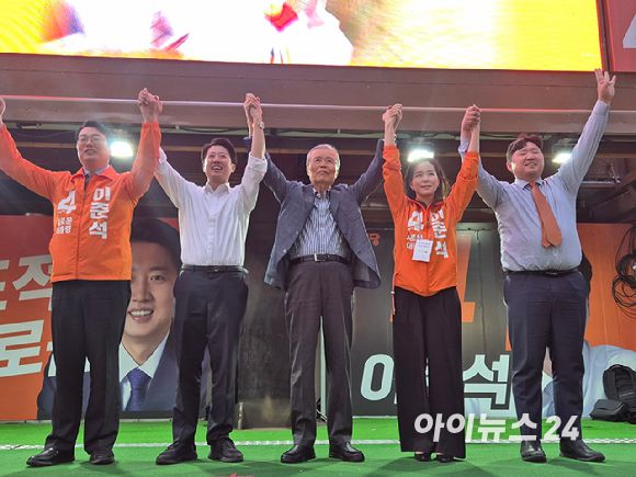 이 후보는 이날 유세장을 찾은 김 전 위원장에 대한 감사의 표시도 했다. 그는 "제가 정치를 시작한 날부터 제 옆에서 항상 저를 다그치거나 조언을 하면서 이끌어준 김 전 위원장 내외가 오셔서 너무 감사하다"고 말했다.