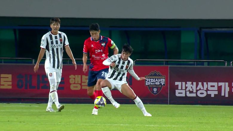 김천은 경기 종료 직전 서민우가 극적인 동점골을 터뜨렸지만, 비디오판독 결과 패스 과정에서 파울이 지적돼 득점이 취소됐습니다.