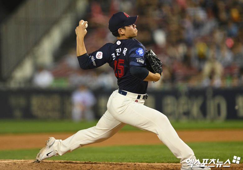 김 감독은 "투수코치와 전력분석팀이 김진욱에게 '마운드 올라가서 있는 힘껏 한번 던져봐라'라고 했다. 잘 던졌다"며 "상황을 본 뒤 선발투수로도 한번 기용할 수 있다"고 전했다.
