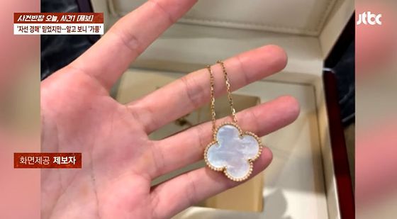 이를 확인한 A씨가 제품 케이스와 보증서를 요구하자, B씨는 "목걸이는 금은방에서 구매했고 케이스는 없지만 보증서는 있다"고 해명했다고 한다.