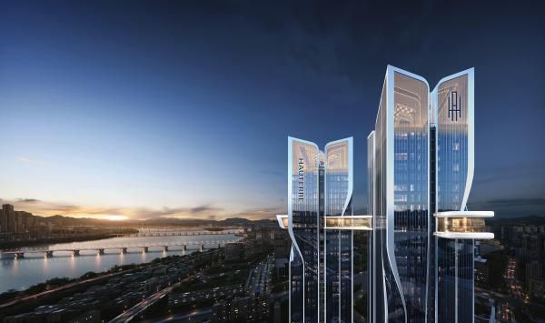 아울러 건축가 벤 반 베르켈이 이끄는 글로벌 건축설계사 유엔스튜디오(UNStudio)와 협업한 특별한 외관 디자인도 선보인다. 한강 물결 형태의 '웨이브 디자인'을 건물 외관과 오피스텔 발코니에 적용하고, 단지 내에 한강과 남산을 조망할 수 있는 스카이 브릿지를 배치한다.