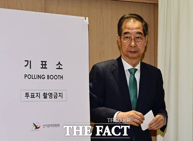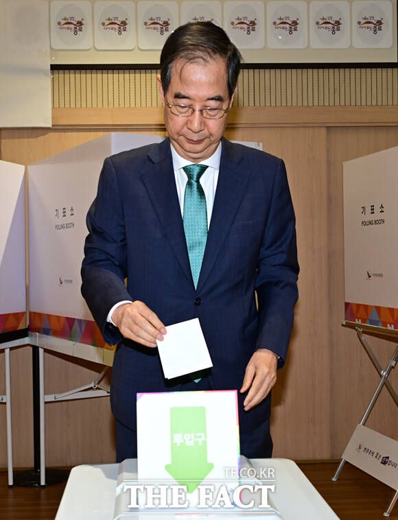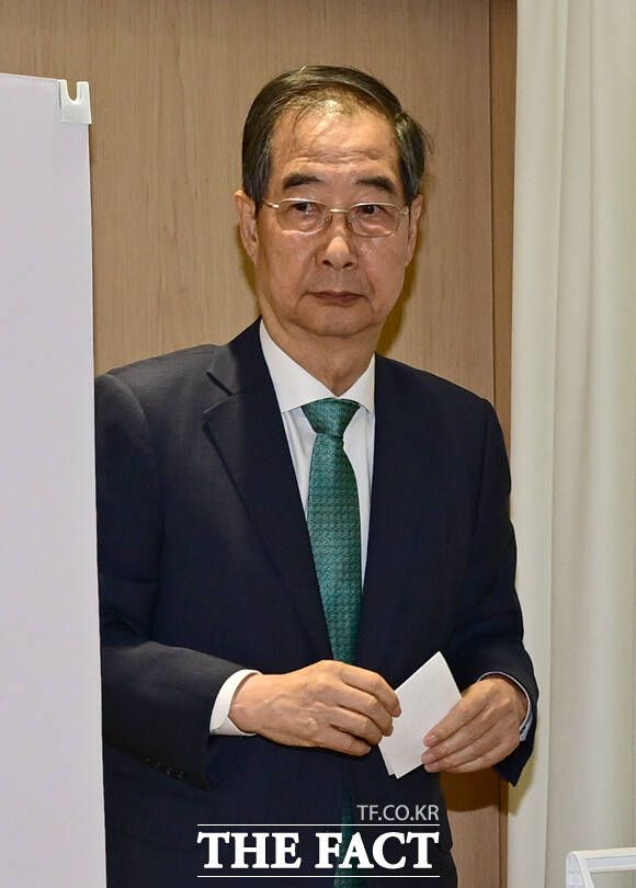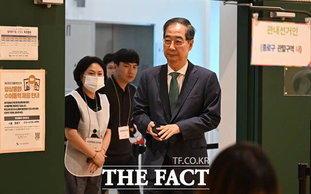 한 전 총리는 사전투표 첫날인 이날 오전 6시 8분께 자택 근처 사전투표소장을 찾아 취재진에 "수고하신다"라는 인사를 건넸다. 투표를 마친 한 전 총리는 내란방조 혐의 조사 관련 내용 질의에는 말을 하지 않은 채 자리를 떠났다.