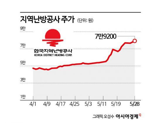 29일 금융투자업계에 따르면 지역난방공사 주가는 지난 3월 말 대비 59.8% 상승했다. 같은 기간 코스피가 7.6% 오른 것을 고려해도 시장 대비 수익률은 52.2%포인트(P)에 달한다. 외국인은 4월부터 5월까지 88억원 누적 순매수를 기록했다.