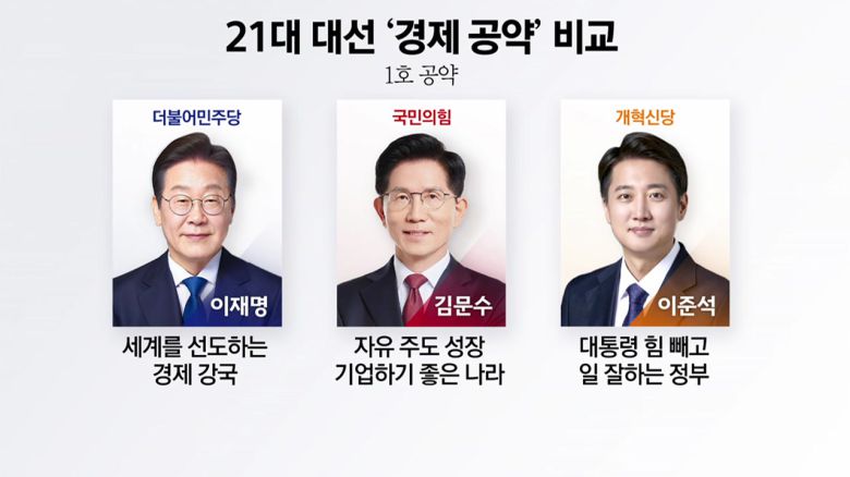 21대 대선 사전투표가 오늘부터 시작됐습니다. 이번 대선처럼 공약이 눈에 띄지 않는 대선, 이런 것도 정말 보기 힘들었다. 이런 분석이 나오고 있는데요. 오늘은 21대 대선, 공약 점검해 보는 시간으로 마련했습니다. 스타트경제, 오늘은 이정환 한양대학교 경제금융학과 교수와 함께합니다. 앞서 문을 열면서 정책을 찾아볼 수 없다, 공약이 너무 뜬구름 잡는 얘기만 있다, 이렇게 비판적인 얘기를 말씀드렸는데 각 후보를 대표하는 1호 공약부터 짚어보도록 할게요. 모두 다 경제에 대한 이야기들을 일단 하고 있는데 어떤 것들이 있습니까?