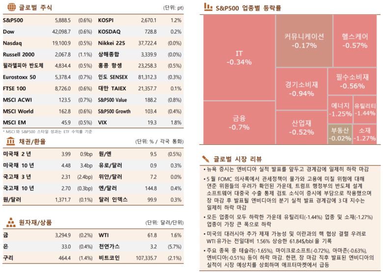 [글로벌 증시요약] 美 증시, 관세정책 물가상승 압력 우려…엔비디아 실적 경계감에 하락