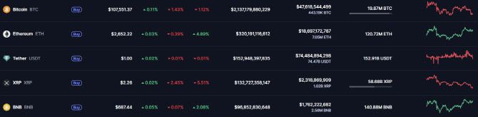 가상자산 시세.(자료=코인마켓캡 사이트) |