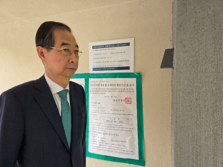 한 전 총리 측에 따르면 한 전 총리는 이날 오전 6시10분쯤 서울 종로구 사직동주민센터에서 사전투표를 진행했다.