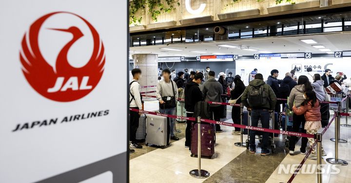 [서울=뉴시스] 정병혁 기자 = 3일 서울 강서구 김포국제공항 국제선 출국장 카운터에서 일본으로 향하는 여행객들이 출국 수속을 하고 있다. 일본 하네다 공항은 지난 2일 여객기 화재 사고로 공항 활주로가 일부 폐쇄됐다. 2024.01.03. jhope@newsis.com |